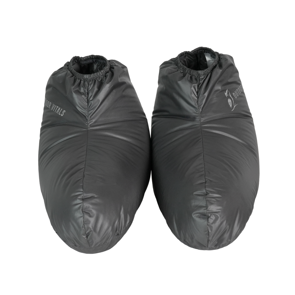 Introducing Outdoor Vitals Ultralight Down Booties – where innovation meets comfort for cold-weather camping. Not all booties are created equal, and our design addresses common concerns with traditional puffy booties to ensure warmth and comfort every night.