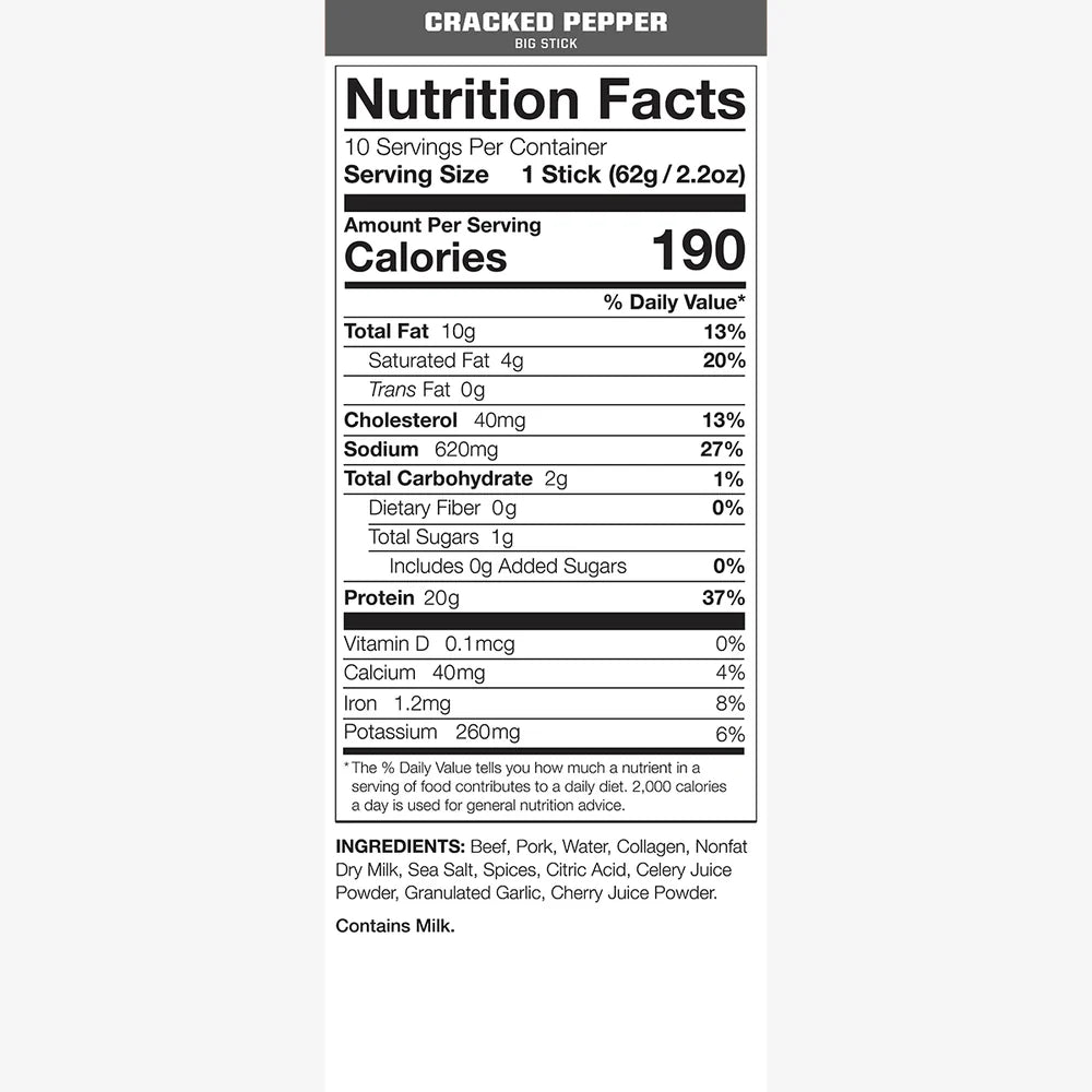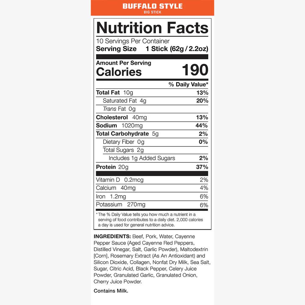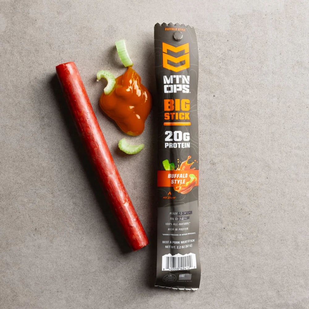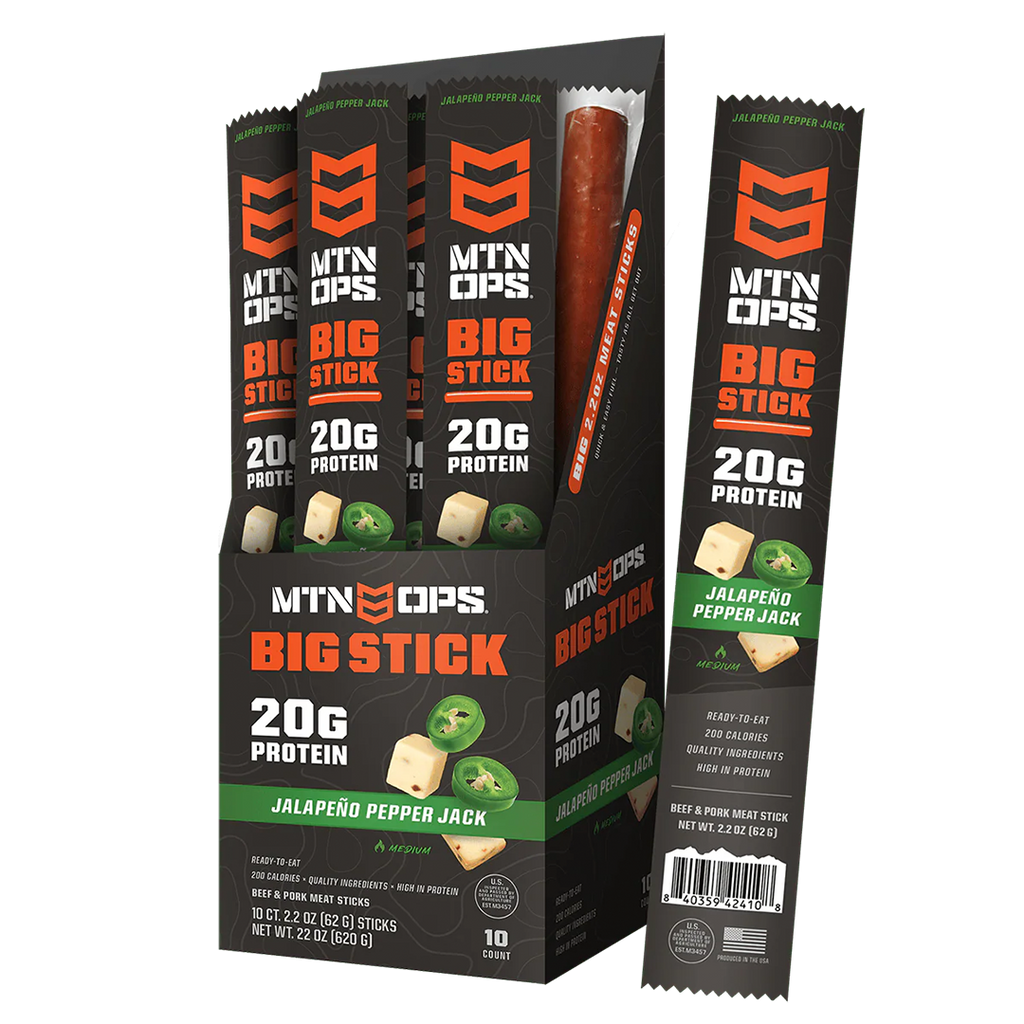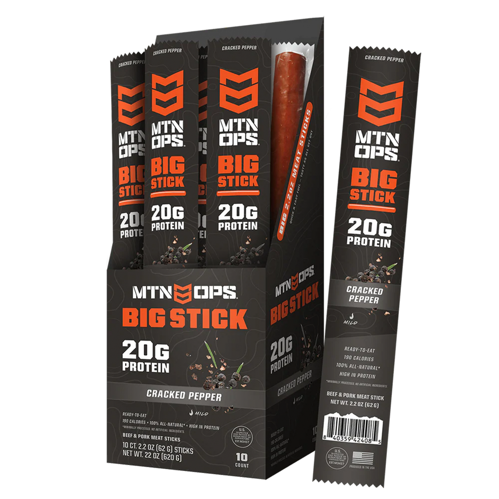 BIG STICK is ready-to-eat meat built to fuel your outdoor performance – 2.2 oz of lean beef & pork whole muscle meats, loaded with 20g of protein and bold flavors you’ll crave!