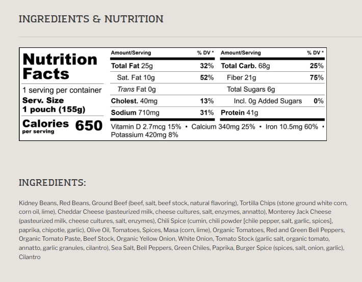 Packit Gourmet Meals creates home-cooked flavors using real quality ingredients. "Austintacious Tortilla Soup" won awards in Backpacker Magazine. "Texas State Fair Chili" comes with REAL corn chips & a cheese packet to add on top. Really every meal goes the extra mile to provide you with a truly gourmet meal in the backcountry!
