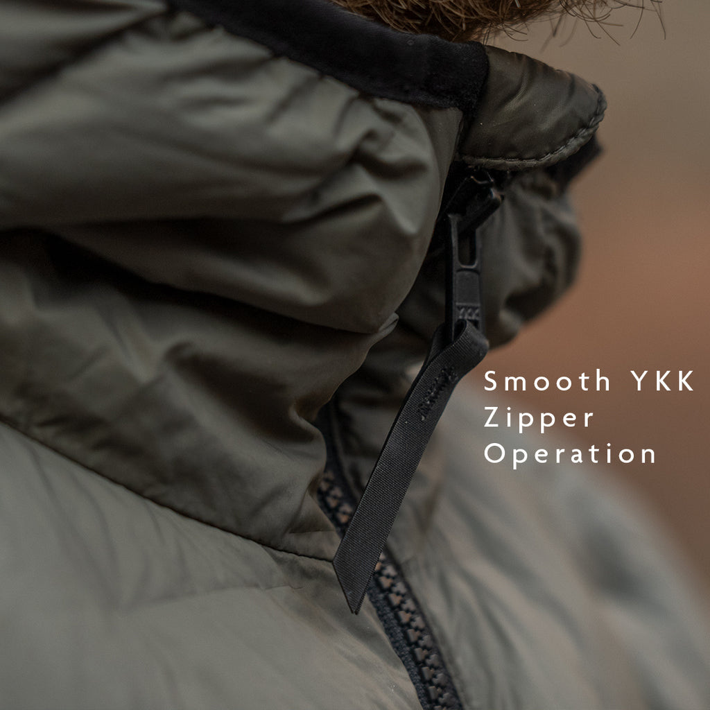 This down insulation was specifically selected to maximize warmth while minimizing weight. The Zulu is our lightest jacket yet, but it's surprisingly warm for how light it is!